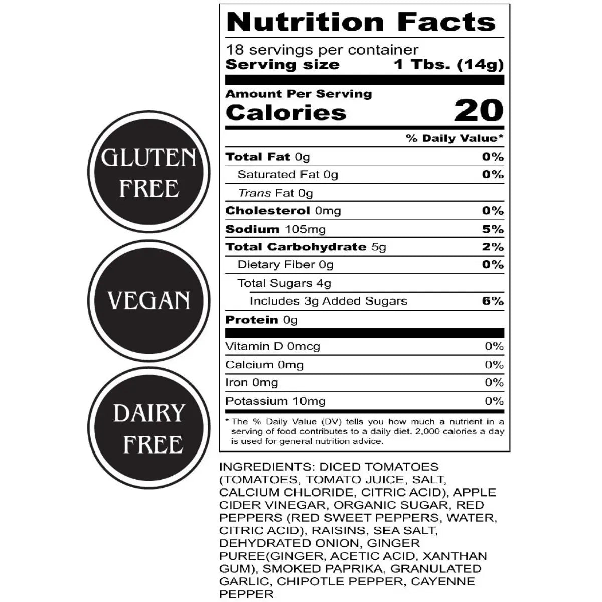 Of Indian origin, the Tomato Chutney is a slightly smokey and spicy, sweet/sour condiment that is used to enhance rice, chicken and fish dishes. It is delicious served with herb cream cheese and crackers as an appetizer, and makes the very best remoulade sauce when mixed with mayonnaise and capers.