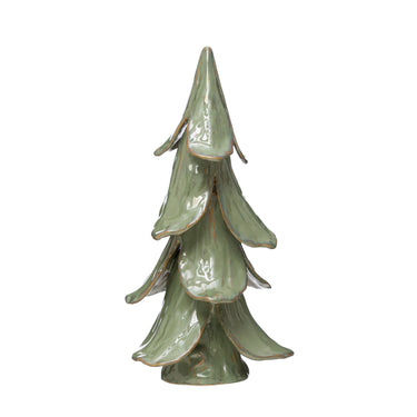 8" Round x 15-1/2"H Handmade Stoneware Tree, Reactive Glaze, Mint Color