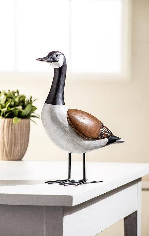 Bird lovers and fans of nature and wildlife alike will definitely want to add this striking Large Standing Canada Goose to their decor. Crafted out of resin and metal, the folksy, rustic sculpt of this majestic North American fowl makes a fitting complement to cottages, cabins, lake houses and more.