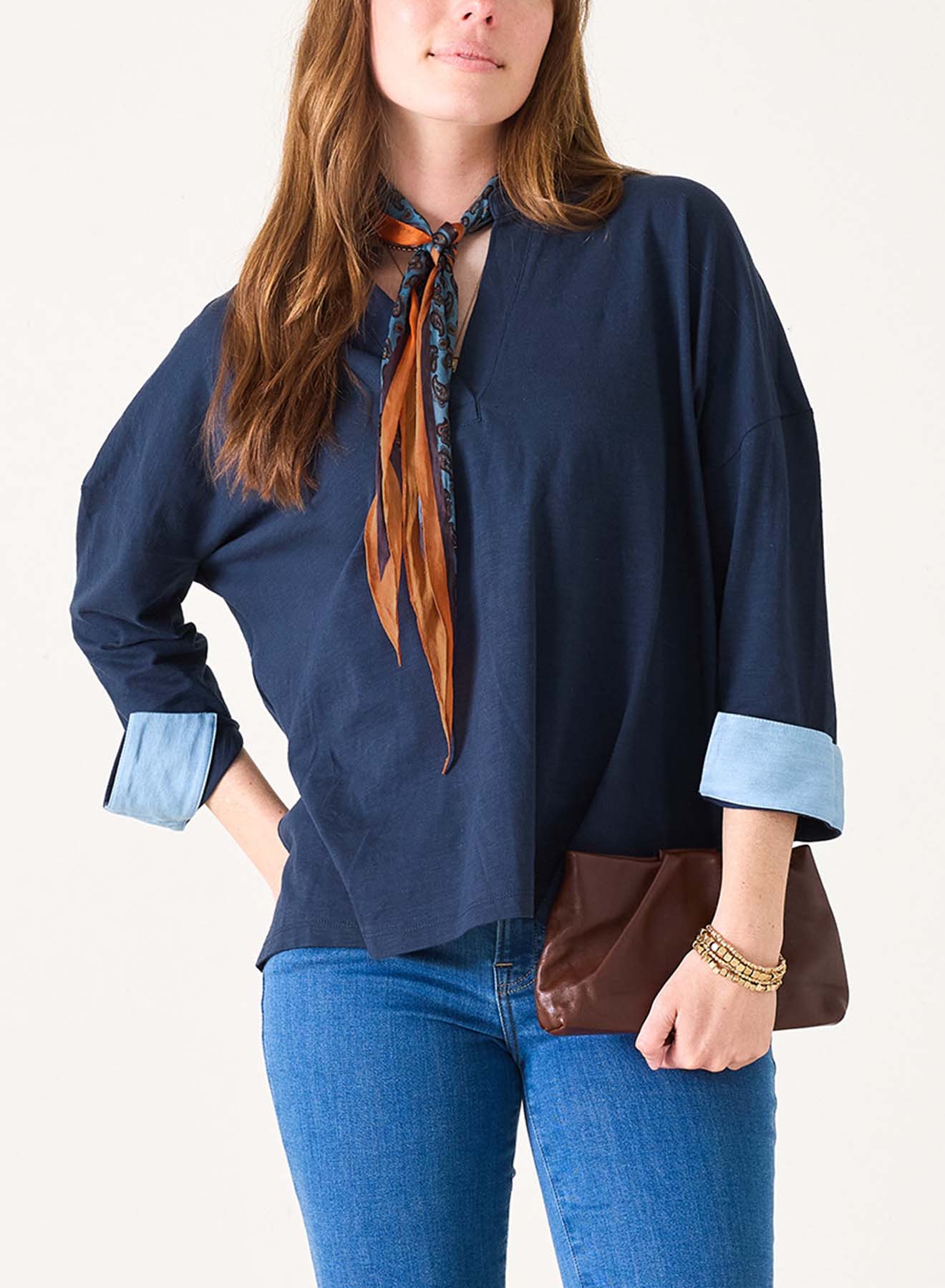 Stay stylish and comfortable with MERSEA's newest addition to their Summer Tee collection - the long-sleeved Amelia Cuff Tee. Whether you're lounging at home or out and about, this versatile V-neck tee with elegant cuffs is the perfect option for any occasion. It's a must-have in every wardrobe.