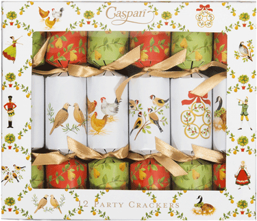 - Our Celebration Crackers each feature classic Caspari paper designs and additional luxury embellishments, such as 3D die-cut appliqués, special ribbon, and more unique details.