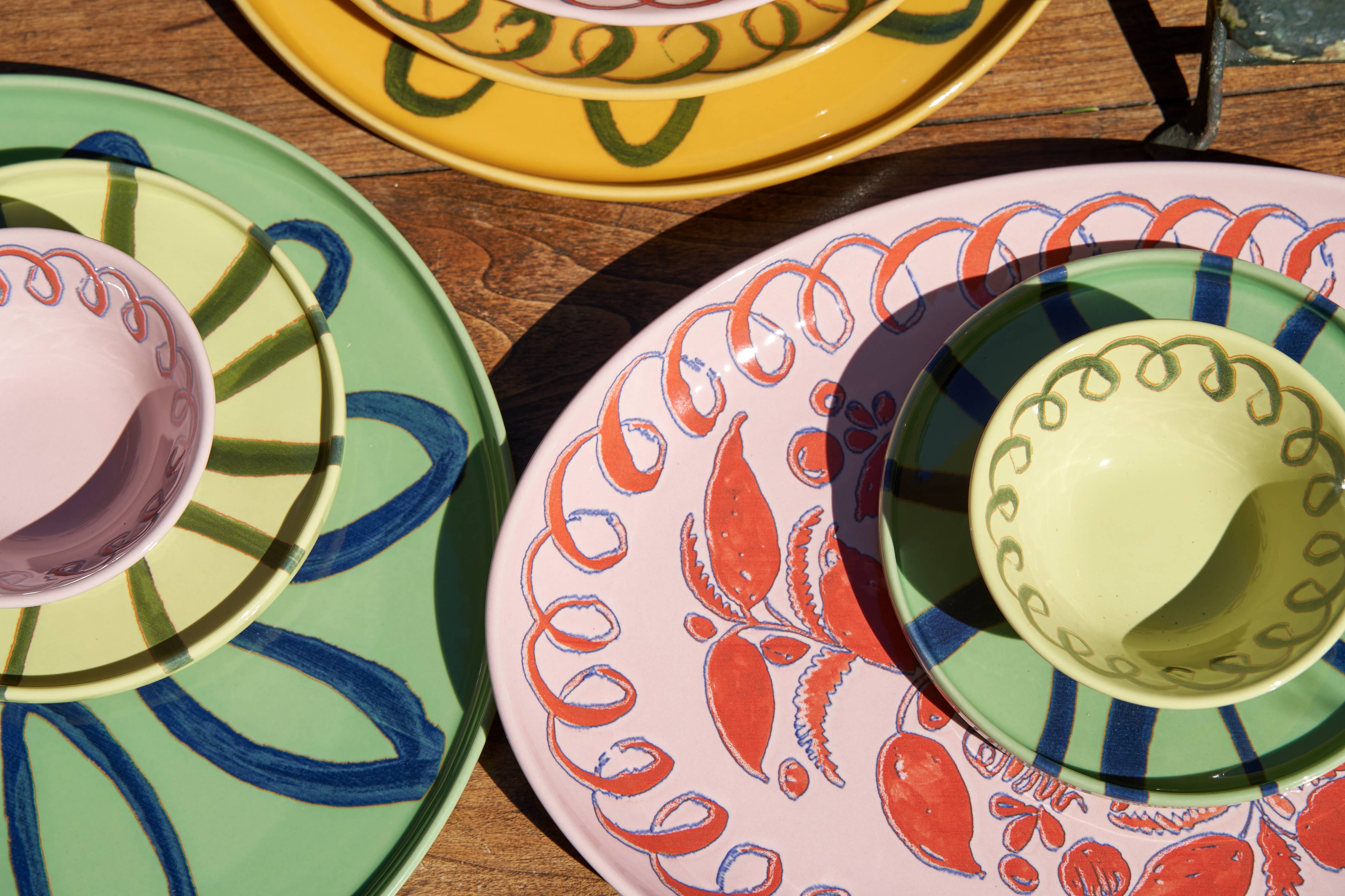 This collection honors the Mediterranean's harvest bounty with a palette of amber yellows and earthen greens, each piece adorned with intricate, hand-painted motifs. From generous serving platters perfect for gathering around the table to everyday plates that elevate simple meals, each ceramic brings the rustic elegance of Italian countryside living to your autumn table.