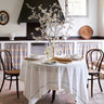 The linen used is rich in natural texture and has been pre-washed for exceptional softness and comfort, akin to your favorite linen shirt. Ironing is optional; we recommend giving the tablecloth a vigorous shake when slightly damp fresh out of a low-heat dryer for a flawless look.