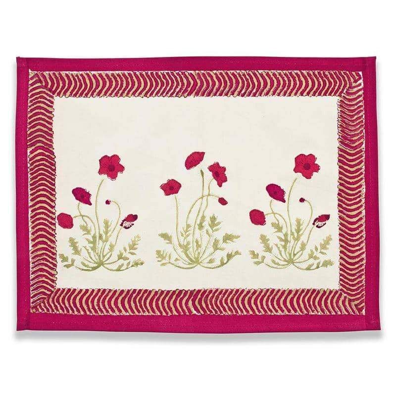 Elegant yet vibrant, the Poppies collection foregrounds the delicate leaves and bold color of an iconic perennial plant. Whether an addition to a terrace table or dining room, this French linen provides an easy way to brighten up a meal. Each of these linens have been carefully handprinted by skilled artisans using a time-honored technique, resulting in a singular piece of craftsmanship.