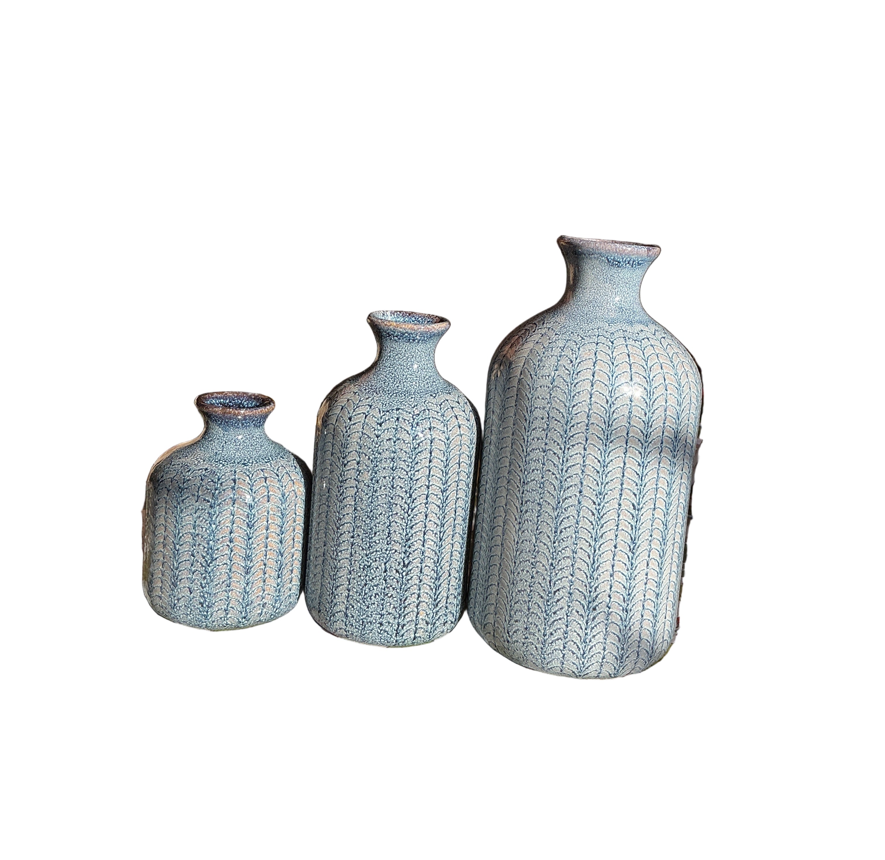 Accent your shelf or mantel with these eye catching Embossed Stoneware Vases. Each feature an interesting stripped pattern and can stand alone, or hold sprigs of fresh, dried, or faux florals.