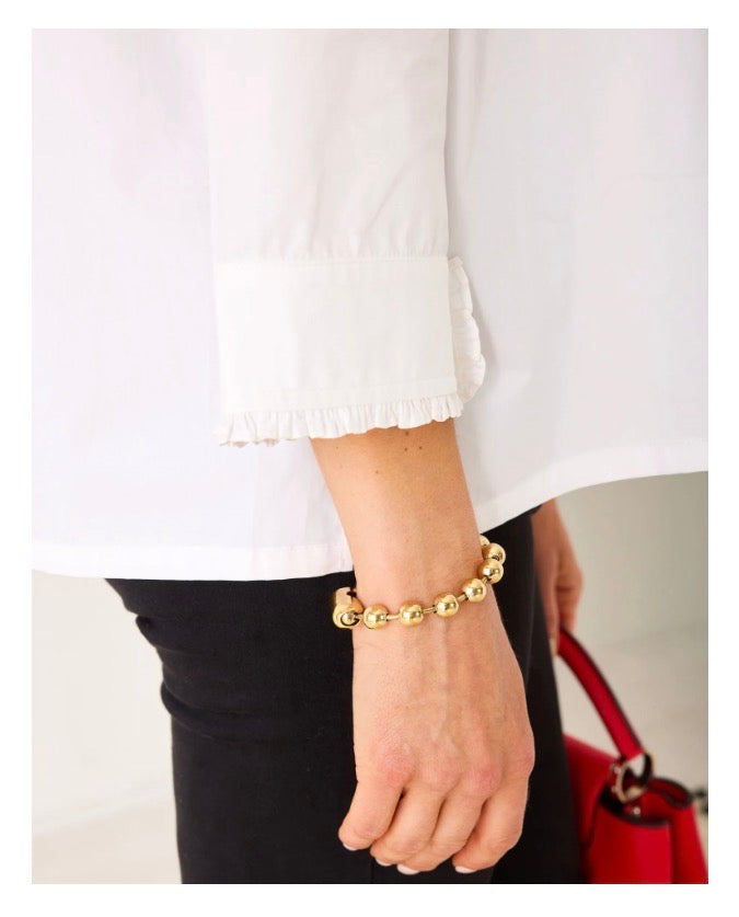 A popped collar makes any outfit sophisticated and chic, even if all you did was throw on a pair of your favorite jeans. The Emerson Top is known for its pop-up collar met with Henley Placket hidden buttons.