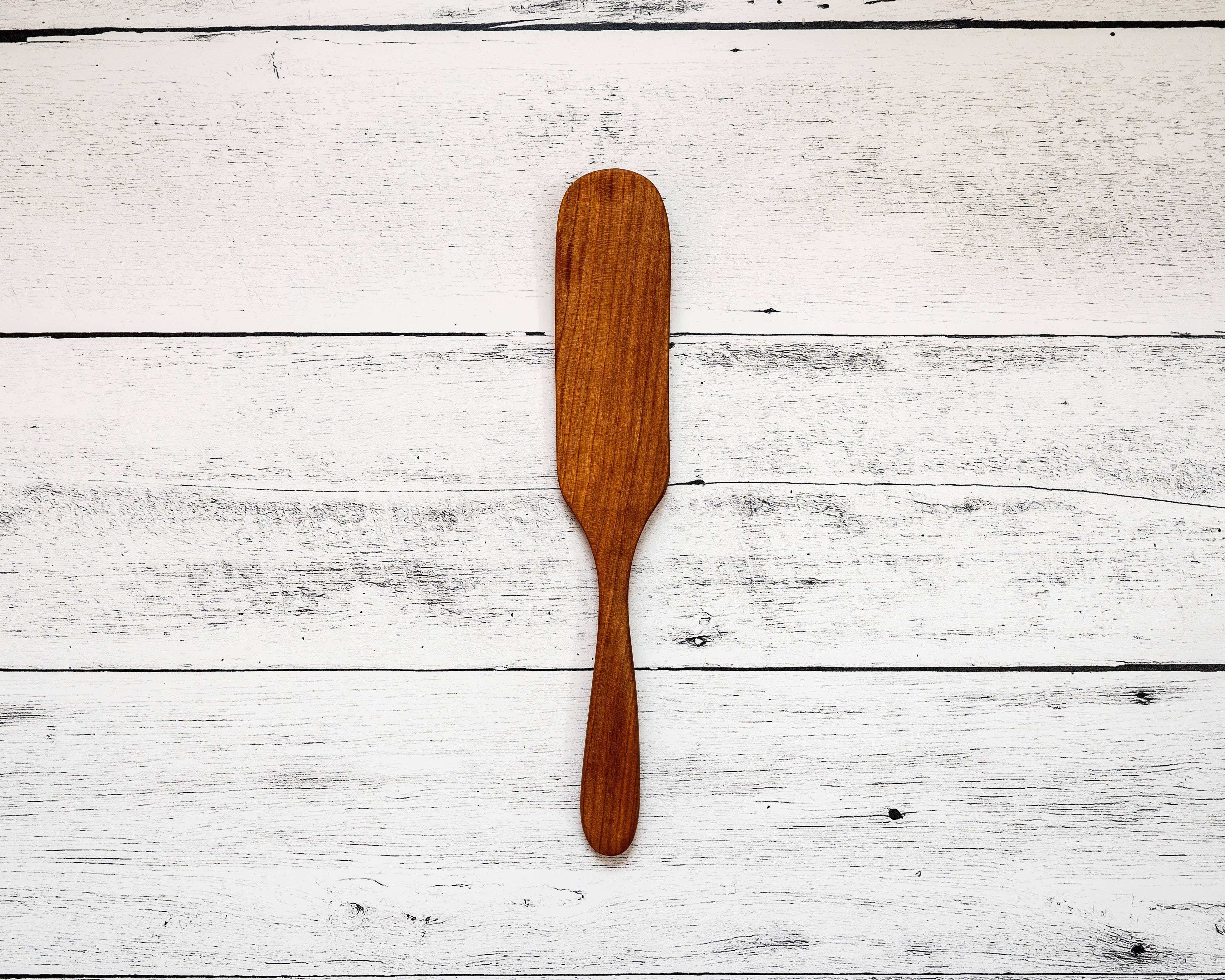 Spurtles were developed in Scotland many centuries ago to stir porridge. Their unique design does not form lumps in porridge, oatmeal, grits or polenta. Made of WV cherry wood. 10" long 1 1/2" wide.