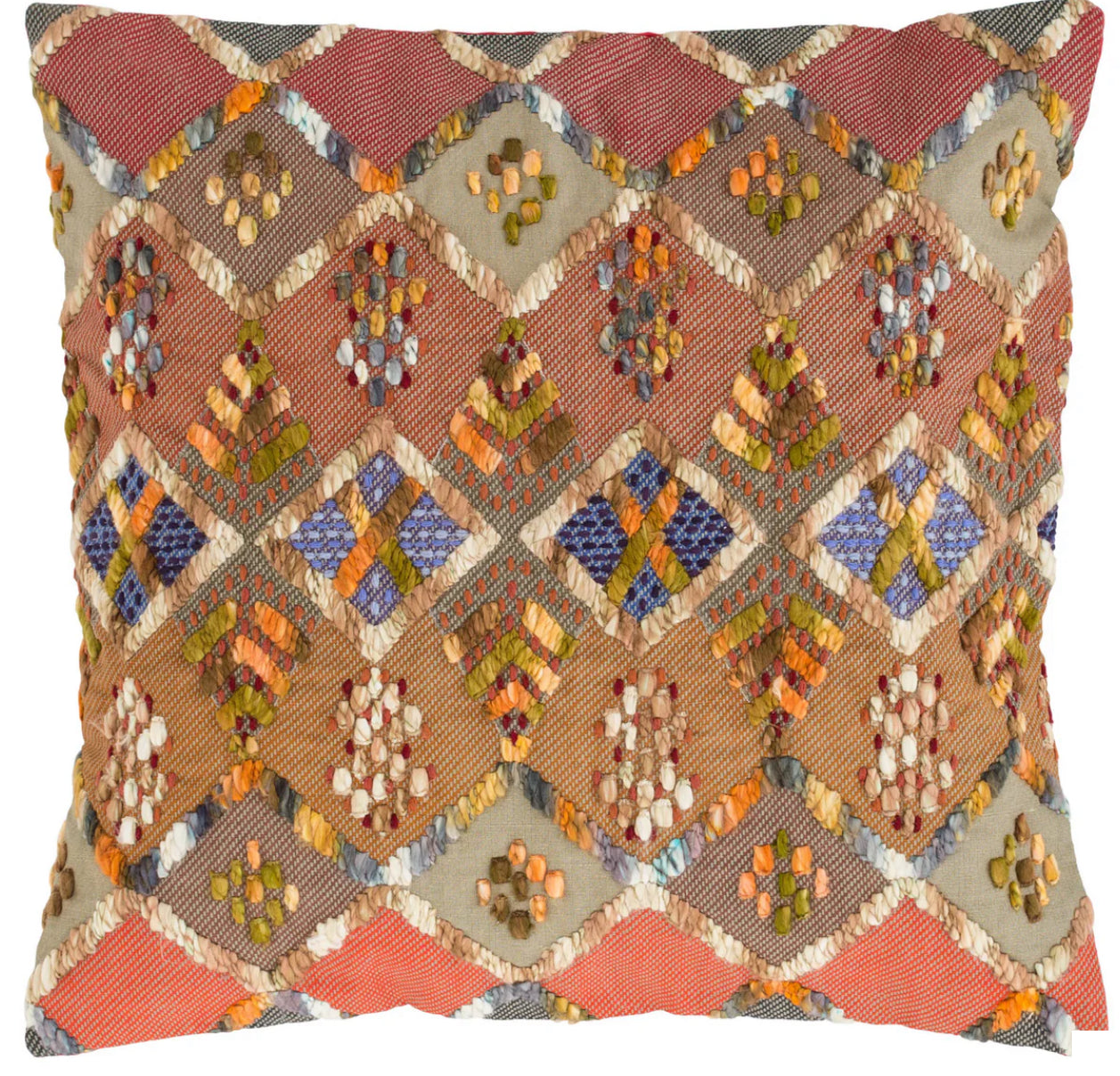Featuring warm spice tones and intricate geometric designs enhanced with embroidery, this set includes both the pillow and a high-quality decorative insert.