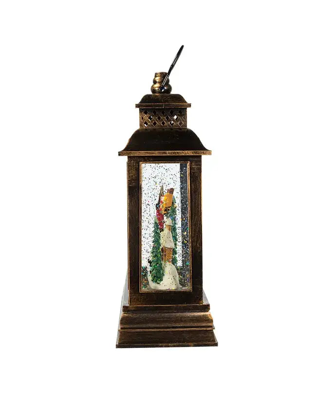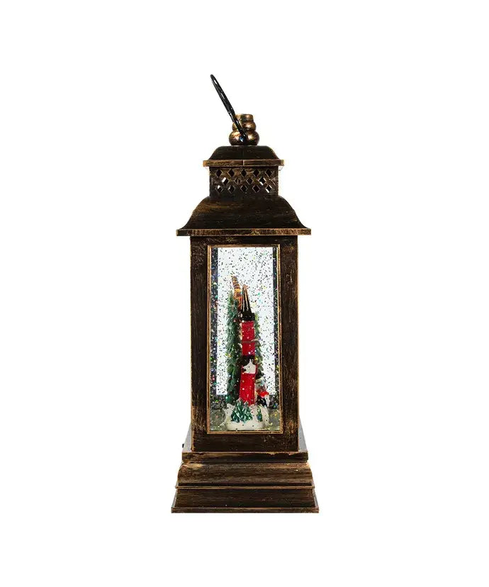 This battery operated lighted Santa water lantern with projector is a festive addition to any home or office holiday décor. It features 1 warm white and 1 pure white LED light and can either be operated by batteries or USB cable.