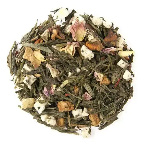 Green tea with hints of apple pieces and wonderful warm cinnamon.