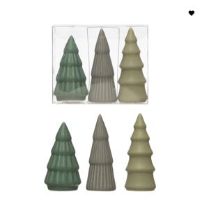 This set of 3 white stoneware tree figurines can be the perfect addition to this season's holiday decor. Place on a table or shelf or add them to a centerpiece for a bit of extra flair. Mingle with other holiday figurines like a snowman, Santa or miniature buildings.