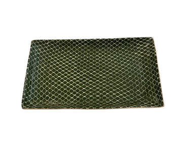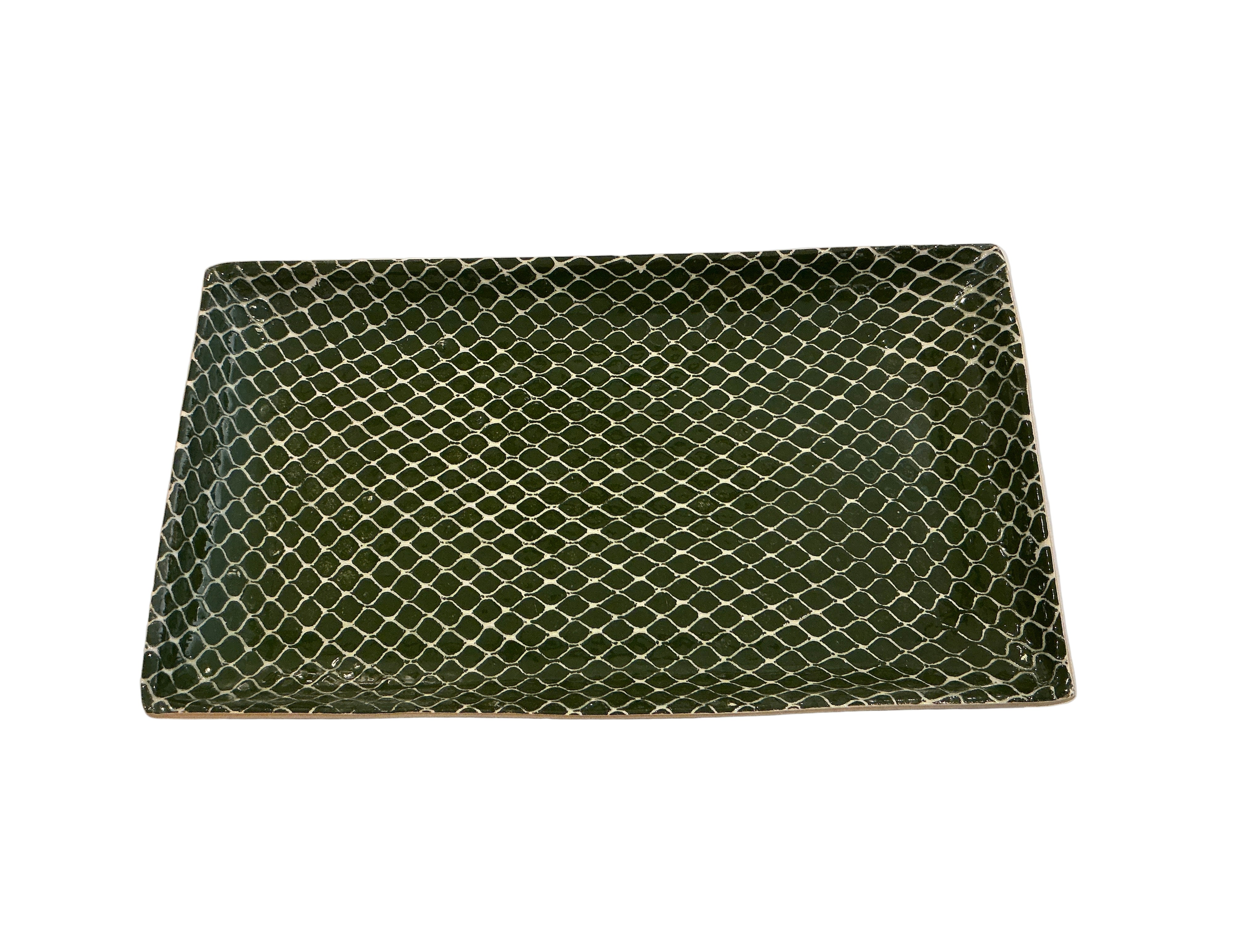 15”x 9” Rectangular tray in pine green and Taj inlay design.