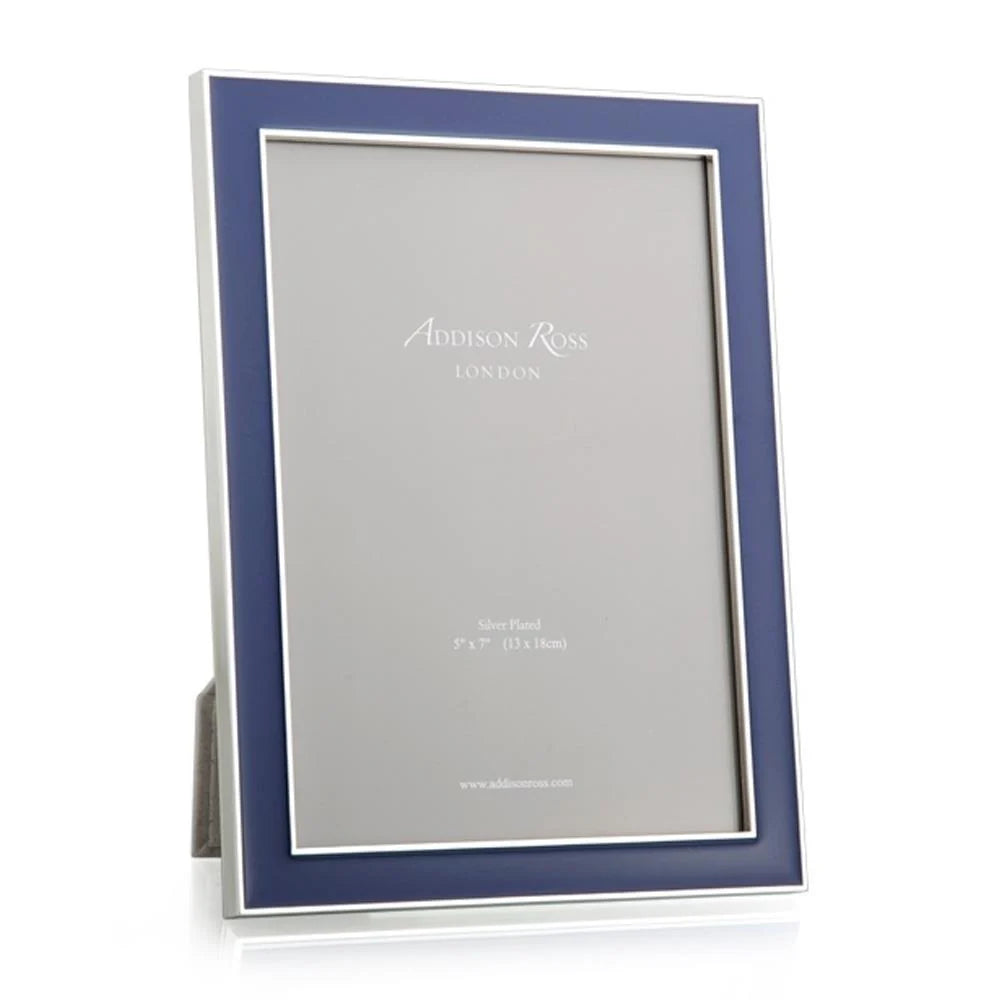 Simple and elegant, the navy blue and silver enamel picture frame is a wonderful way to showcase your most precious photographs. One of the most popular frames, its classic style complements both black and white and full color photographs.