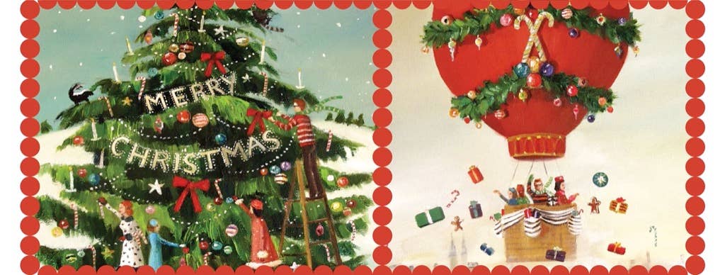 Holiday Greetings! Take a sip from this festive holiday mug featuring artwork illustrated by Janet Hill.