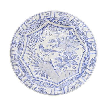 The Oiseau Bleu Collection by Gien features elegant birds, buds and branches depicted with the skill and vision of an artist, capturing a sense of movement, dimension and arrangement. The border design, inspired by 18th century dinnerware found on a Spanish shipwreck, has a delicate appearance, as if it has been gently worn away by the ocean's waves and salt.