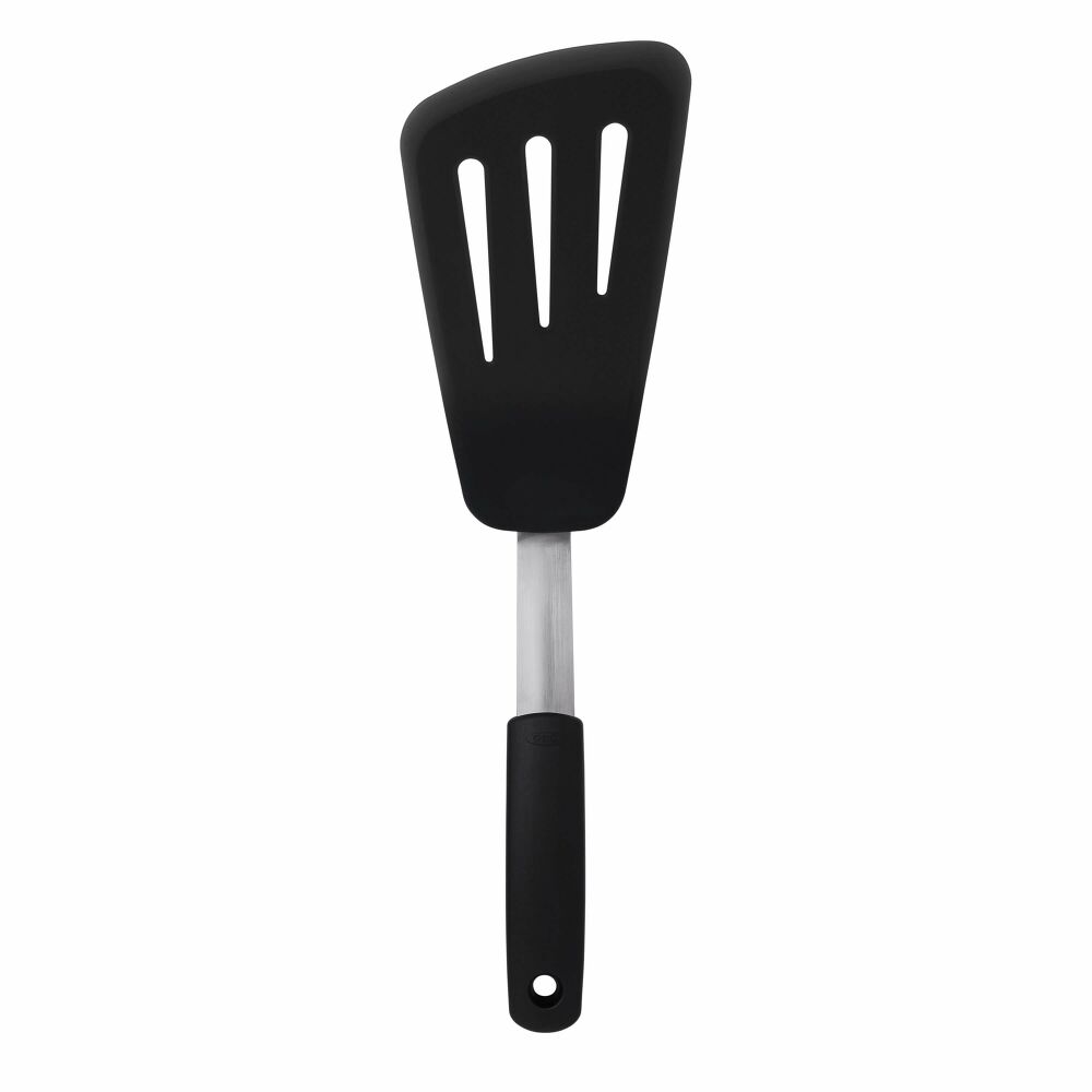 Our Silicone Flexible Turners combine the strength of stainless steel with the heat resistance and non-stick friendliness of a silicone outer layer. Thin, flexible edges glide under foods in the pan to keep them intact. The Omelet Turner is ideal for flipping longer, delicate foods.