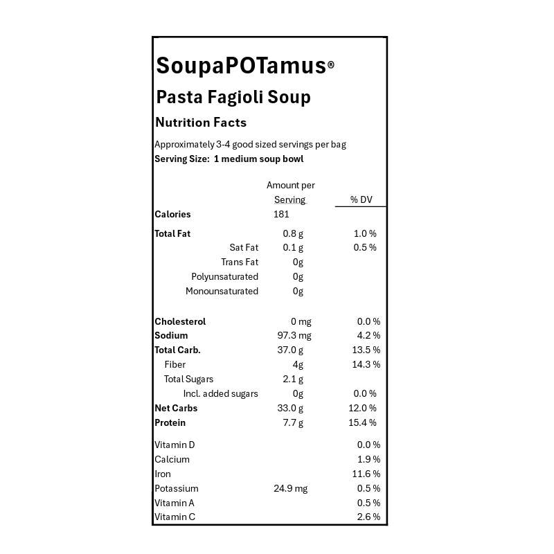SoupaPOTamus LLC - SoupaPOTamus Pasta Fagioli Shelf-Stable Dry Soup