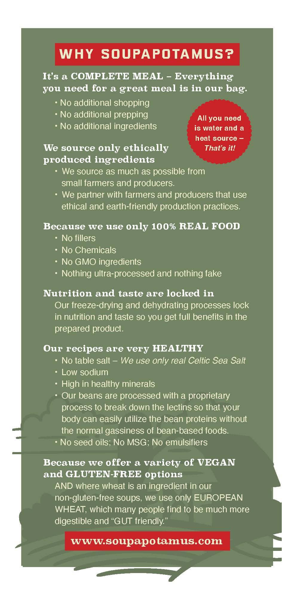 No Artificial Ingredients: Clean, simple ingredients your customers can trust for a healthy body-and-soul meal.