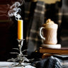 Elegant natural décor and soft romantic candlelight are on hand when you decorate with Vagabond House's Acorn and Oak Leaf Single Taper Candlestick. Crafted from our pure pewter, the single, highly polished classic socket is supported by an intricately detailed pewter rendition of an oak twig studded with leaves and tiny acorns.
